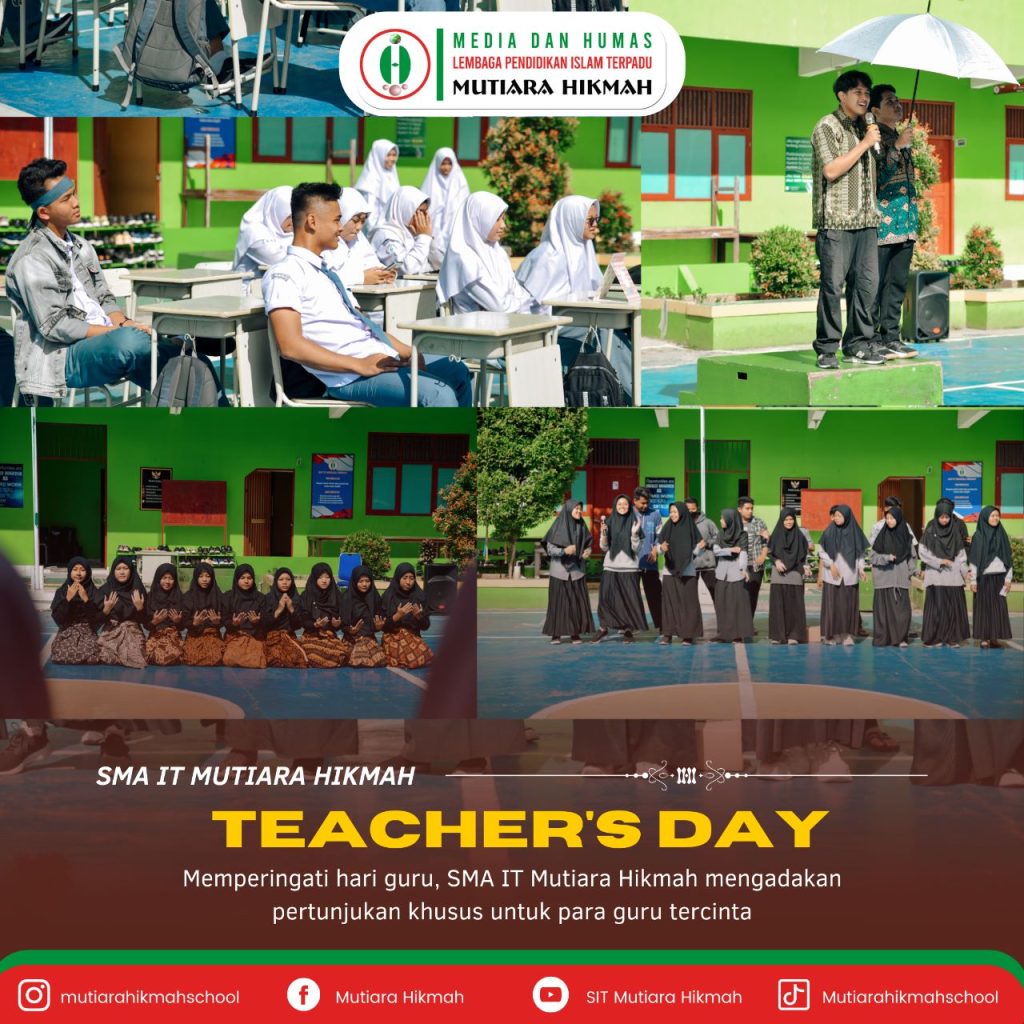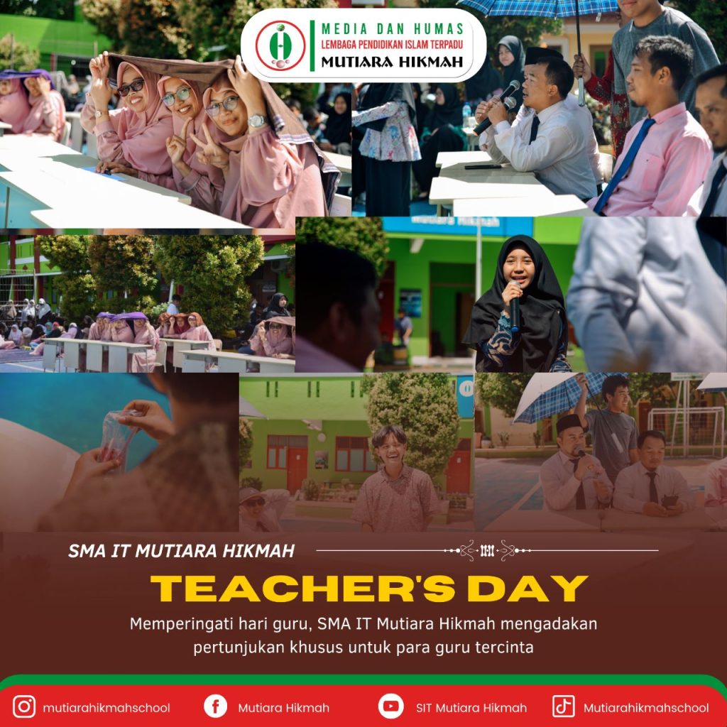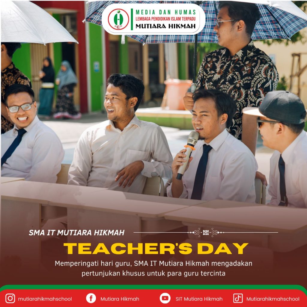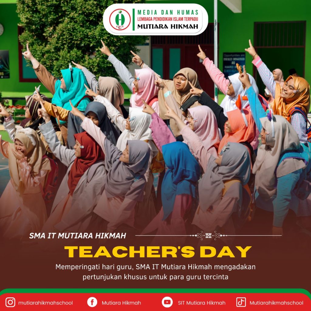 Sebagai bentuk apresiasi dari siswa bagi seluruh dewan guru yang telah mendidik dan membimbingnya, siswa-siswi SMA IT Mutiara Hikmah melaksanakan Kegiatan Peringatan Hari Guru Nasional yang diinisiasi oleh OSIS sebagai panitia kegiatan. Dalam kegiatan ini, seluruh siswa kelas X, XI, dan XII memberikan persembahan kepada gurunya berupa penampilan dari masing-masing kelas. Melalui kegiatan ini, siswa-siswi SMA IT Mutiara Hikmah berkesempatan untuk dapat menyalurkan bakat yang dimilikinya. Selain itu, guru-guru juga mengikuti beberapa lomba untuk memeriahkan kegiatan peringatan hari guru yang telah diselenggarakan oleh siswa-siswi SMA IT Mutiara Hikmah.