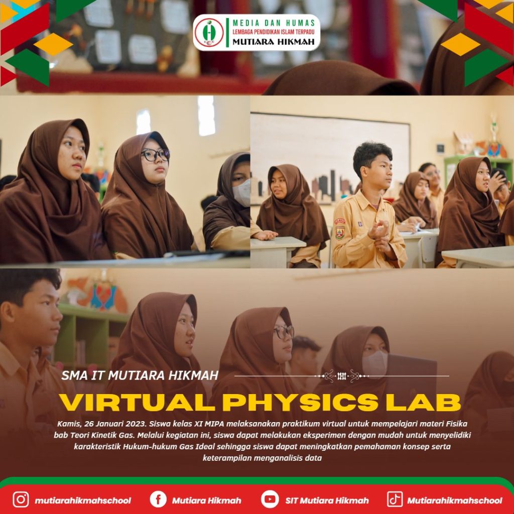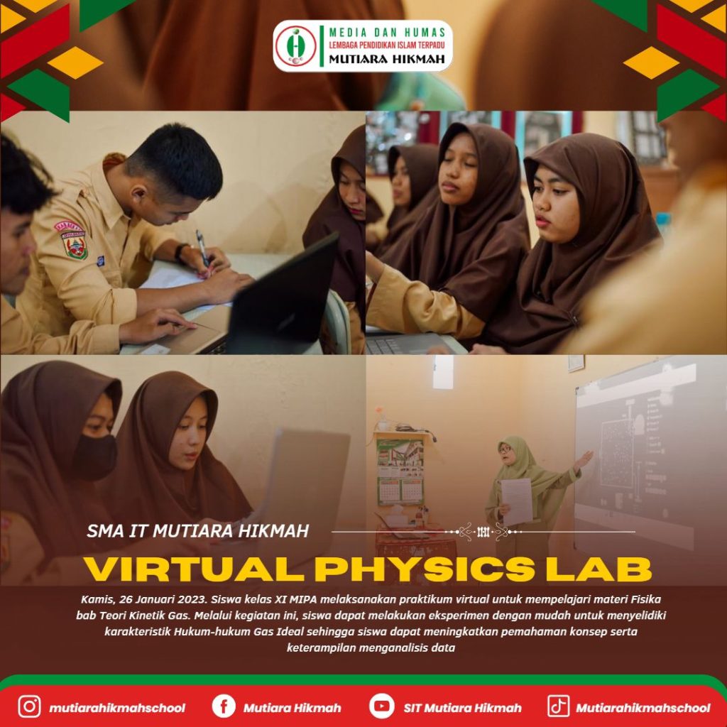 Pelaksanaan kegiatan pembelajaran di SMA IT Mutiara Hikmah salah satunya menerapkan Pembelajaran Berbasis ICT (Information Communication and Technology), yakni pembelajaran yang menggunakan media komputer sebagai media belajar interaktif. Dalam pembelajaran kali ini, siswa kelas XI MIPA melaksanakan praktikum virtual untuk mempelajari materi Fisika bab “Teori Kinetik Gas”. Melalui kegiatan ini, siswa dapat melakukan eksperimen dengan mudah sehingga siswa dapat meningkatkan pemahaman konsep serta keterampilan menganalisis data.